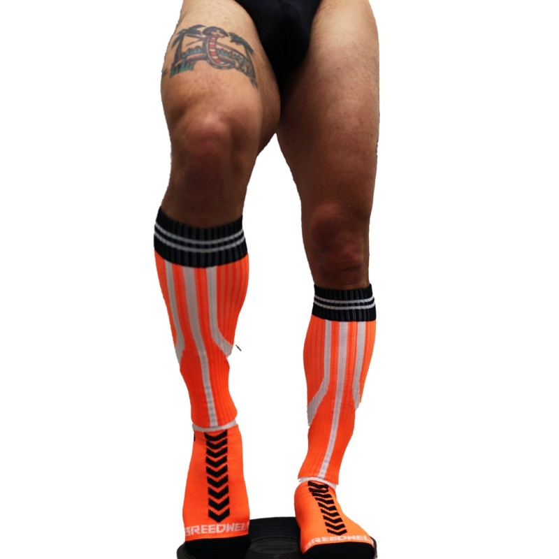 Nieuw van BREEDWELL: SUCKER SOCKS! Super stoer en SEXY! De SUCKER SOCKS zijn onze meest opvallende en gewaagde sokken tot nu toe. Ze passen gemakkelijk bij alle items uit de CIRCUIT BREAKER-groep en hebben een modern ontwerp met een chevronpatroon langs de kuit, BREEDWELL-logo's op de tenen en onze meest hardcore tekst op de zool: SUCK IT HARDER. Koop ze in NEON PINK, AQUA BLUE, NEON ORANGE en BLACK, trek ze aan, trek ze omhoog, ga op je knieën zitten en SUCK. Eén maat voor iedereen.